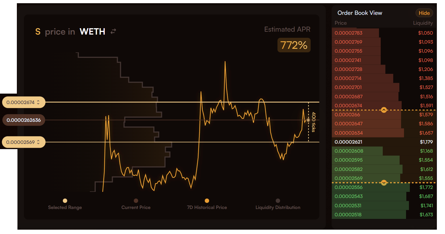 The more optimized a user's range is, the higher rewards they earn. This naturally aligns liquidity providers' interests with Shadow's growth and success. The goal of these incentives is to increase trading volume in pools, making them preferred routing destinations for aggregators. Concentrated liquidity is multiple times more efficient in bringing volume to a pool.